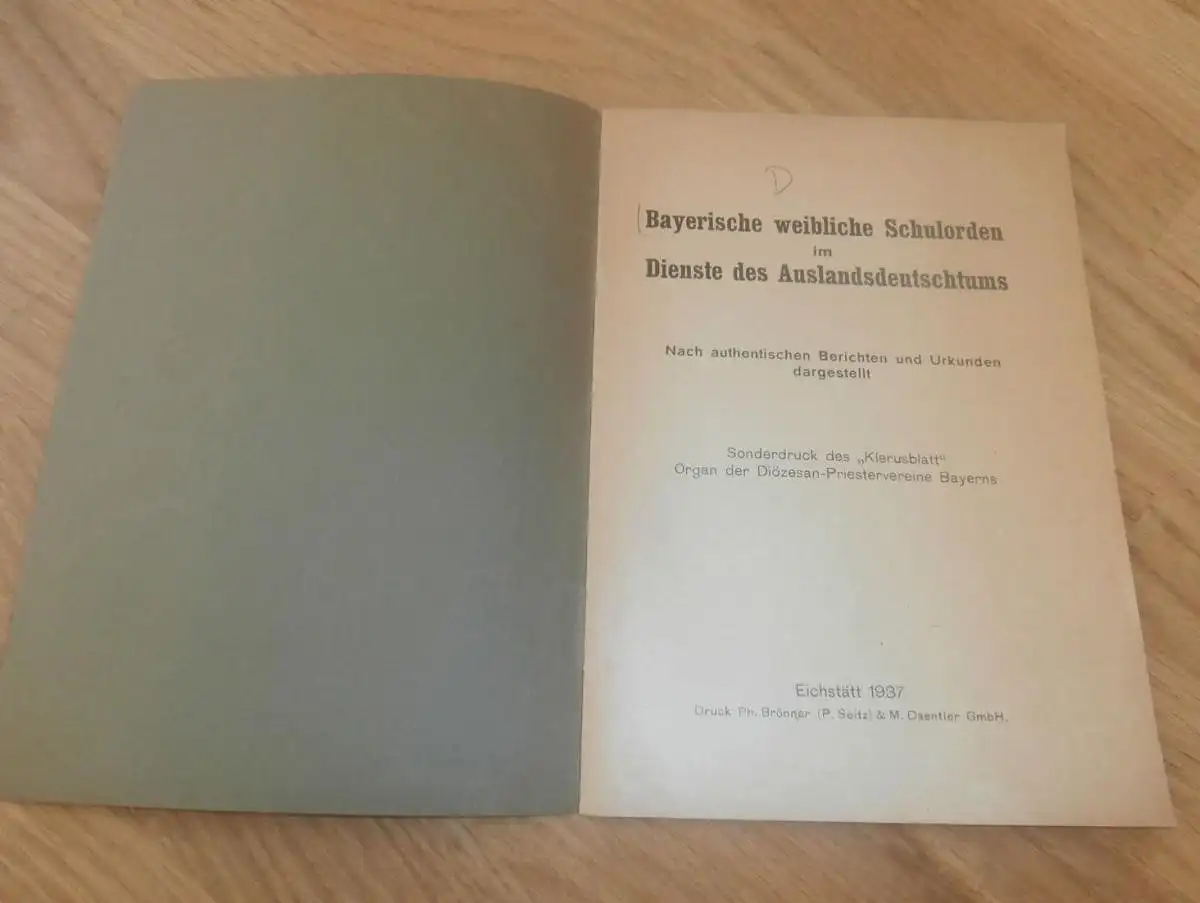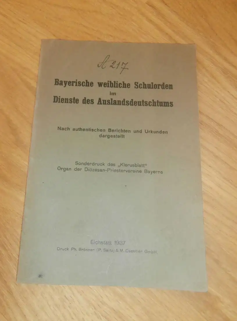 Bayerische weibliche Schulorden im Dienste des Auslandsdeutschtum , Diözesan - Priestervereine Bayern , Prieser , Franziskaner , Benediktiner , Kloster , Mission , Dillingen , Nymphenburg , Eichstätt , Orden , Klerus !!! B28