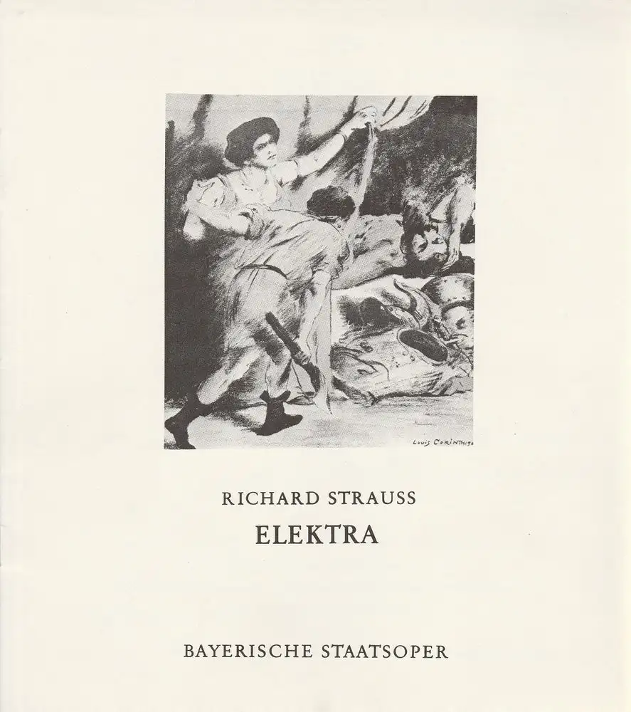 Tragödie von Hugo von Hofmannsthal. Musikalische Leitung: Wolfgang Sawallisch. Nach der Inszenierung von Günther Rennert. Spielleitung: Oscar Arnold-Paur. Bühne und Kostüme: Rudolf Heinrich. Chöre: Josef Beischer. Mitwirkende: Astrid Varnay, Birgit Nilsson, Leonie Rysanek, Fritz Uhl, Theo Adam, Karl Helm, Gertrud Freedmann, Antonie Fahberg, Friedrich Lenz, u.a. - Theaterprogramm, Opernprogramm, Ballettprogramm, Musicalprogramm, Konzertprogramm, Theatermemorabilia, Programmhefte Sammlung, deutsche Theatergeschichte.
