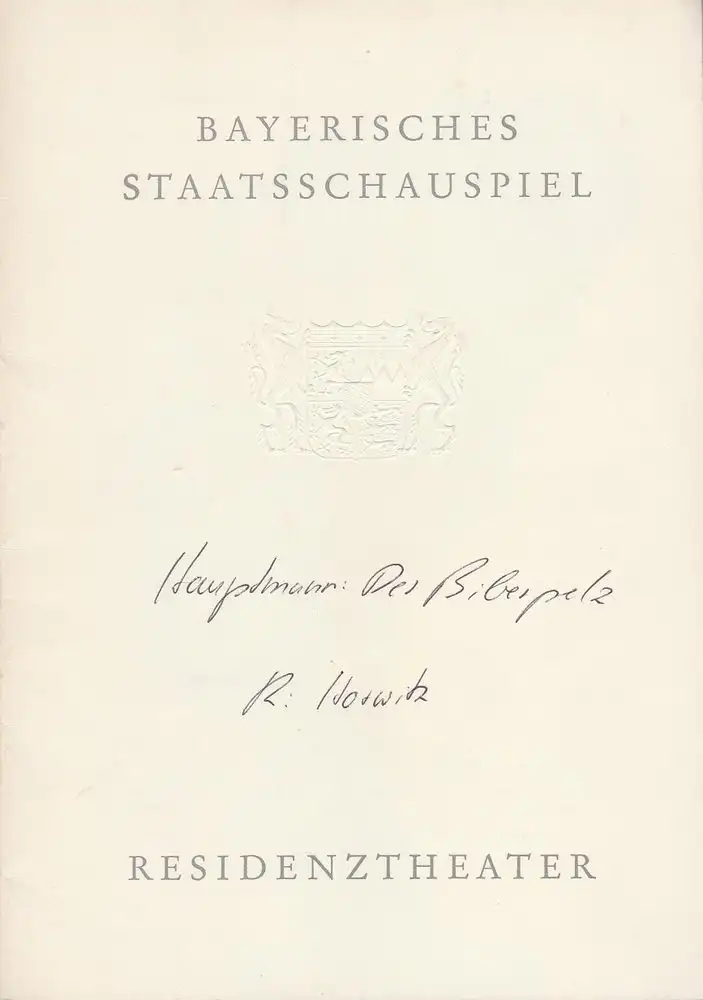 Bayerisches Staatschauspiel, Helmut Henrichs, Wolfgang Kirchner: Programmheft Gerhart Hauptmann DER BIBERPELZ Premiere 25. September 1962 Residenztheater Spielzeit 1962 / 63 Heft 1.