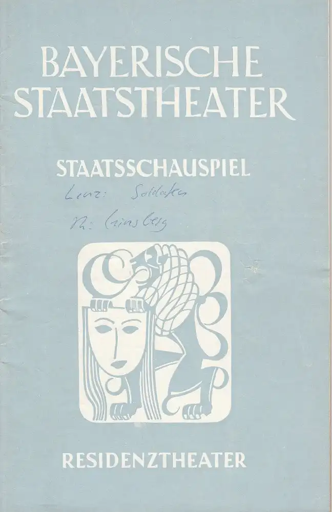 Inhalt: Texte zu Calderon: Der Richter von Zalamea und zu Jacob Michael Reinhold Lenz: Die Soldaten. Inszenierung: Ernst Ginsberg. Musik: Mark Lothar. Bühnenbild und Kostüme: Kurt Hallegger. Mitwirkende: Willy Rösner, Liane Kopf, Elfriede Kuzmany, Luise Cleve, Charlotte Krüger, Peter-Tim Schaufuß, Lins Carstens, Hans Cossy, Hans Clarin, u.a. - Theaterprogramm, Opernprogramm, Ballettprogramm, Musicalprogramm, Konzertprogramm, Theatermemorabilia, Programmhefte Sammlung, deutsche Theatergeschichte.