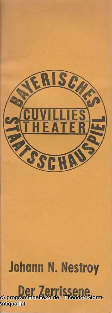 Bayerisches Staatsschauspiel, Cuvilliestheater, Kurt Meisel, Jörg Dieter Haas: Programmheft Der Zerissene von Johann Nestroy Premiere 29. Juli 1972.
