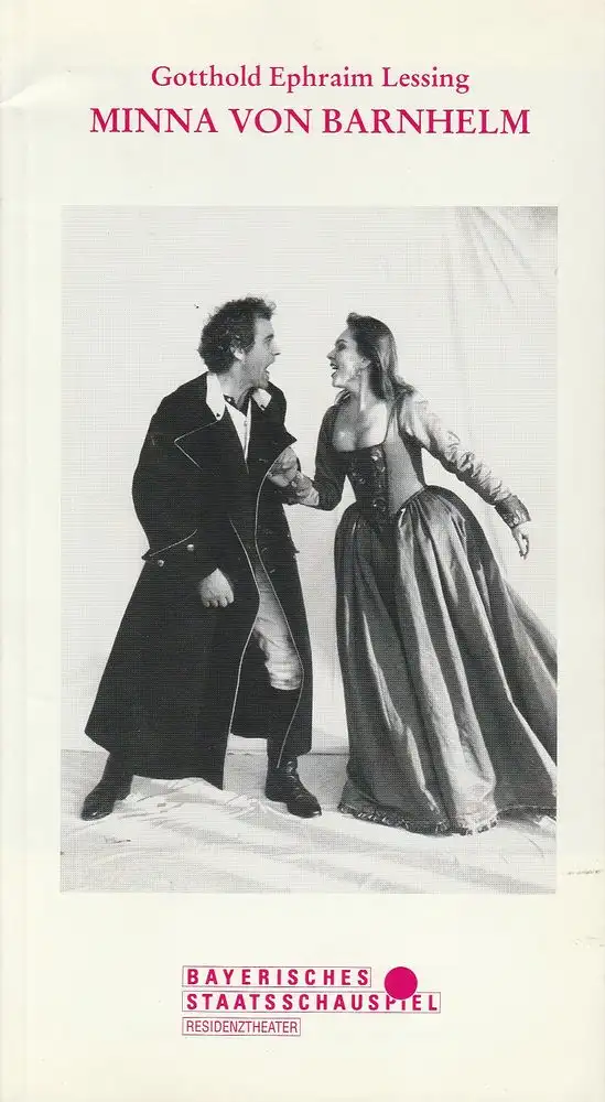 Lustspiel von Gotthold Ephraim Lessing. Regie: Roland Schäfer. Bühne: Wolfgang Mai. Kostüme: Franziska Loring. Mitwirkende: Roland Schäfer, Gabriele Köstler, Alois Strempel, Sona McDonald, Michael Mendl, Peter Kremer, Edgar Walther, u.a. - Theaterprogramm, Opernprogramm, Ballettprogramm, Musicalprogramm, Konzertprogramm, Theatermemorabilia, Programmhefte Sammlung, deutsche Theatergeschichte.