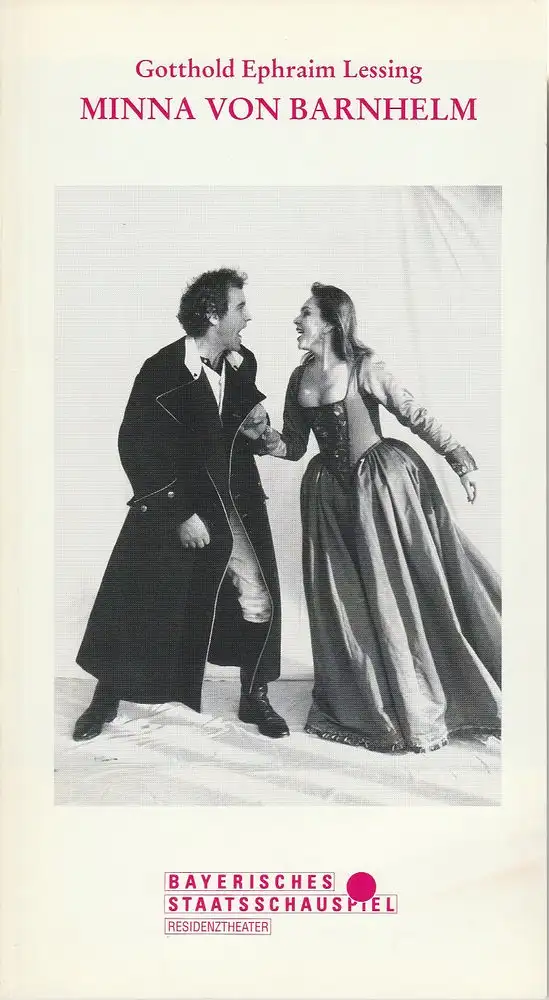 Lustspiel von Gotthold Ephraim Lessing. Regie: Roland Schäfer. Bühne: Wolfgang Mai. Kostüme: Franziska Loring. Mitwirkende: Roland Schäfer, Gabriele Köstler, Alois Strempel, Sona McDonald, Michael Mendl, Peter Kremer, Edgar Walther, u.a. - Theaterprogramm, Opernprogramm, Ballettprogramm, Musicalprogramm, Konzertprogramm, Theatermemorabilia, Programmhefte Sammlung, deutsche Theatergeschichte.