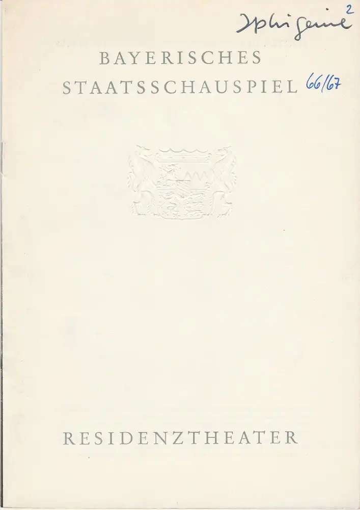 Titel: Programmheft Neuinszenierung Johann Wolfgang von Goethe IPHIGENIE AUF TAURIS Premiere 1.November 1966 Residenztheater Spielzeit 1966 / 67