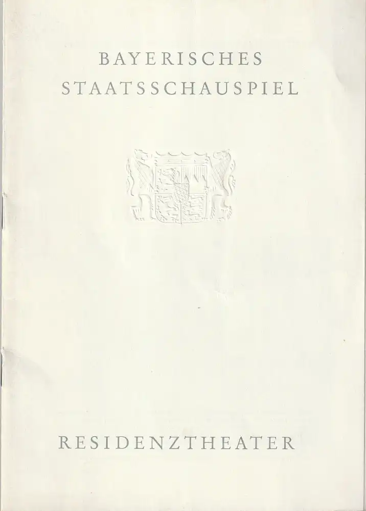 Blätter des Bayerischen Staatsschauspiels. Schauspiel in vier Akten. Inszenierung: Gerd Brüdern. Bühne und Kostüme: Siegfried Stepanek. Musik: Peter Fischer. Mitwirkende: Karl Walter Diess, Elisabeth Orth, Friedrich Maurer, Hans Michael Rehberg, Eva Vaitl, Doris Kiesow, Carin Braun, Herbert Mensching, u. a. - Theaterprogramm, Opernprogramm, Ballettprogramm, Musicalprogramm, Konzertprogramm, Theatermemorabilia, Programmhefte Sammlung, deutsche Theatergeschichte.
