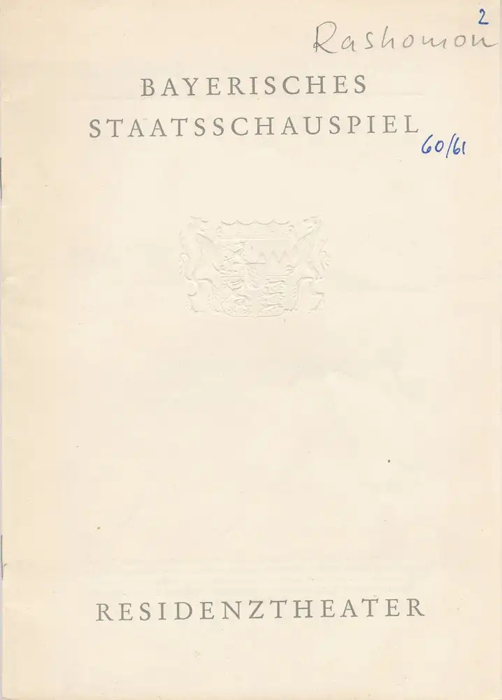 Titel: Programmheft Fay und Michael Kanin RASHOMON Premiere 15. Oktober 1960 Residenztheater Spielzeit 1960 / 61