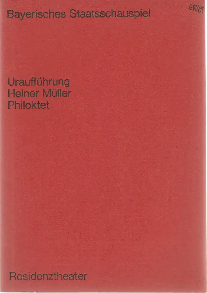 Bayerisches Staatsschauspiel, Helmut Henrichs, Ernst Wendt, Joachim Johannsen, Wolfgang Bauernfeind: Programmheft Uraufführung PHILOKTET von Heiner Müller 13. Juli 1968 Residenztheater.