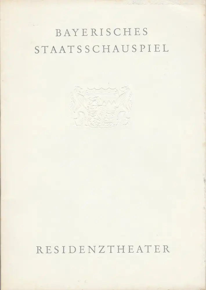 Blätter des Bayerischen Staatsschauspiels. Inszenierung: Helmut Henrichs. Bühne und Kostüme: Jürgen Rose. Mitwirkende: Karl Walter Diess, Gertrud Kückelmann, Elfriede Kuzmany, Thomas Holtzmann, Peter Pasetti. - Theaterprogramm, Opernprogramm, Ballettprogramm, Musicalprogramm, Konzertprogramm, Theatermemorabilia, Programmhefte Sammlung, deutsche Theatergeschichte.