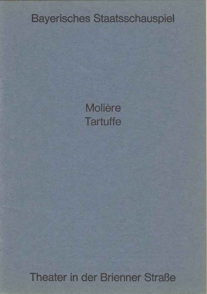Titel: Programmheft TARTUFFE. Komödie von Moliere. Premiere 16. April 1971 Theater an der Brienner Straße