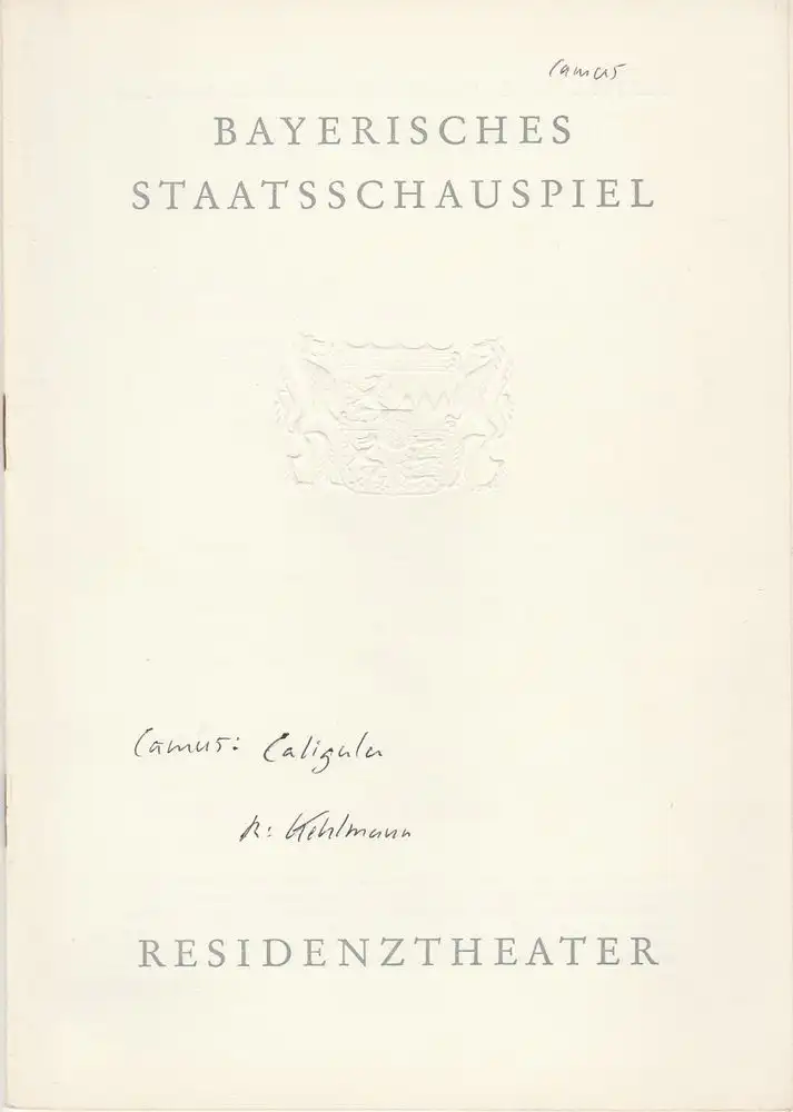 Bayerisches Staatsschauspiel, Helmut Henrichs, Gerhard Reuter: Programmheft CALIGULA. Schauspiel von Albert Camus Premiere 11. Januar 1964 Residenztheater.