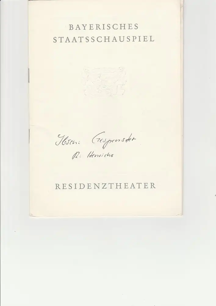 Bayerisches Staatsschauspiel, Helmut Henrichs, Gerhard Reuter: Programmheft Henrik Ibsen GESPENSTER Premiere 15. April 1965 Residenztheater Spielzeit 1964 / 65 Heft 7.
