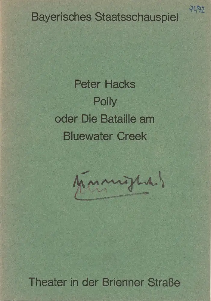 Bayerisches Staatsschauspiel, Helmut Henrichs, Urs Jenny, Florian Mercker: Programmheft Peter Hacks: POLLY oder Die Bataille am Bluewater Creek. Premiere 5. November 1971 Theater an der Brienner Straße.