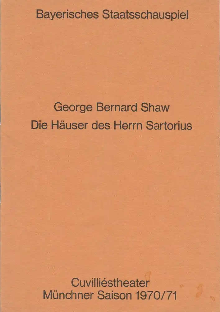 Bayerisches Staatsschauspiel, Helmut Henrichs, Urs Jenny: Programmheft George Bernard Shaw DIE HÄUSER DES HERRN SARTORIUS Premiere 10. Januar 1971 Cuvilliestheater Spielzeit 1970 / 71.