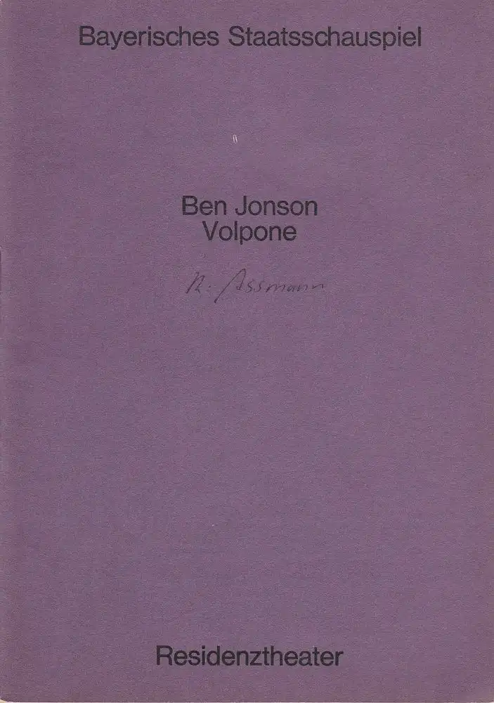 Bayerisches Staatsschauspiel, Helmut Henrichs, Urs Jenny: Programmheft VOLPONE. Komödie von Ben Jonson. Premiere 29. November 1970 Residenztheater.