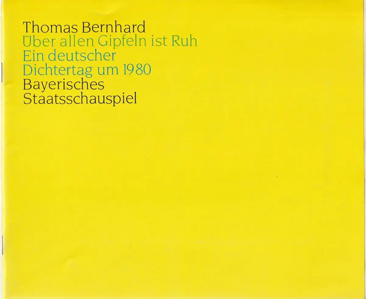 Bayerisches Staatsschauspiel, Kurt Meisel, Jörg-Dieter Haas, Otto König, Claus Seitz: Programmheft Thomas Bernhard ÜBER ALLEN GIPFELN IST RUH Premiere 22. Juli 1983.