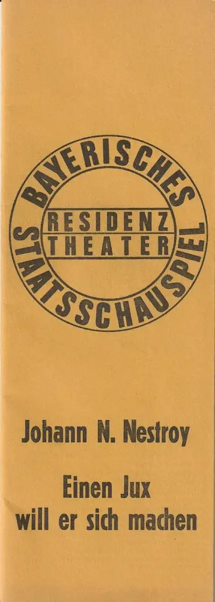 Bayerisches Staatsschauspiel, Kurt Meisel, Residenztheater, Jörg-Dieter Hass, Peter Mertz: Programmheft Johann Nestroy EINEN JUX WILL ER SICH MACHEN Premiere 28. Februar 1973 Spielzeit 1972 / 73.