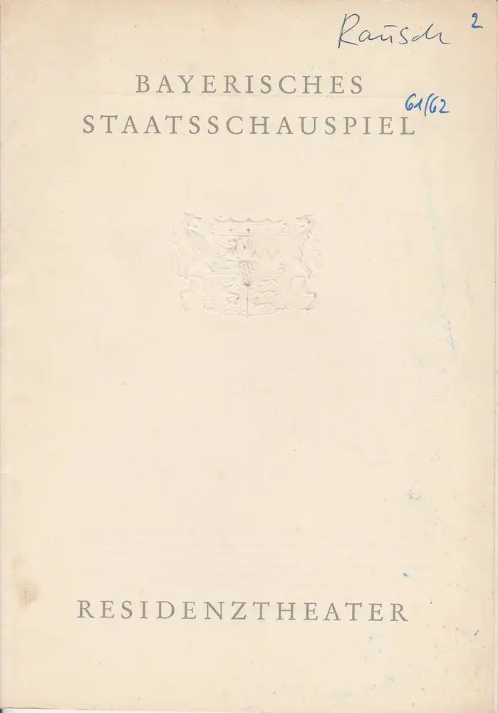 Blätter des Bayerischen Staatsschauspiels. Neuinszenierung. Inszenierung: Ernst Ginsberg. Bühnenbild: Johannes Waltz. Kostüme: Elisabeth Urbancic. Mitwirkende: Gerd Brüdern, Elisabeth Orth, Doris Horstmeister, Otto David, Agnes Fink, u.a. - Theaterprogramm, Opernprogramm, Ballettprogramm, Musicalprogramm, Konzertprogramm, Theatermemorabilia, Programmhefte Sammlung, deutsche Theatergeschichte.