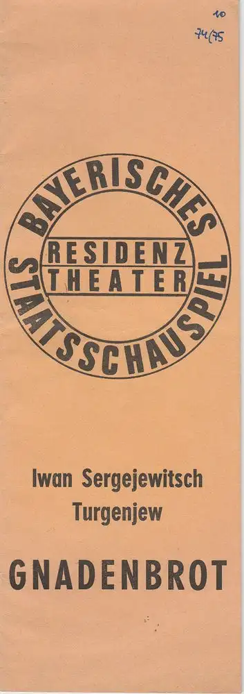 Bayerisches Staatsschauspiel, Residenztheater, Kurt Meisel, Jörg-Dieter Haas, Peter Mertz, Claus Richter, Rosmarie Schulz: Programmheft Iwan Sergejewitsch Turgenjew: GNADENBROT. Premiere 8. Juni 1975 Spielzeit 1974 / 75 Heft 10.