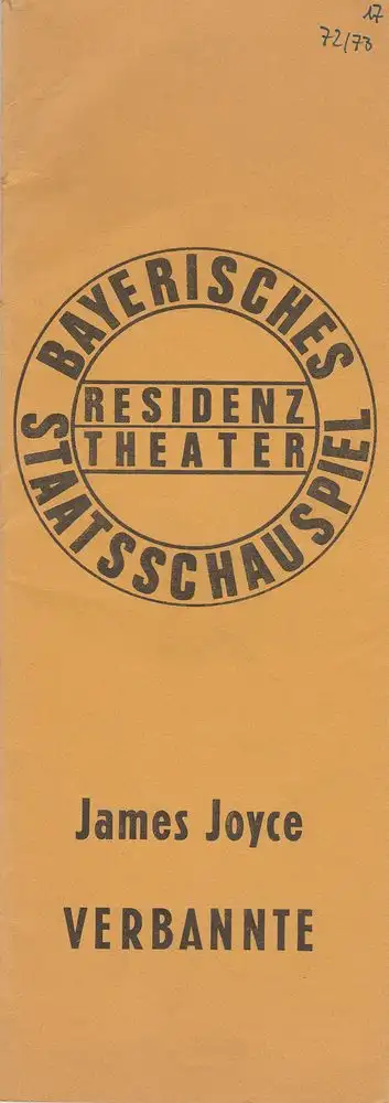 Bayerisches Staatsschauspiel, Residenztheater, Kurt Meisel, Jörg-Dieter Haas, Peter Mertz: Programmheft VERBANNTE. Stück von James Joyce. Premiere 5. Juli 1973 Spielzeit 1972 / 73 Heft 17.