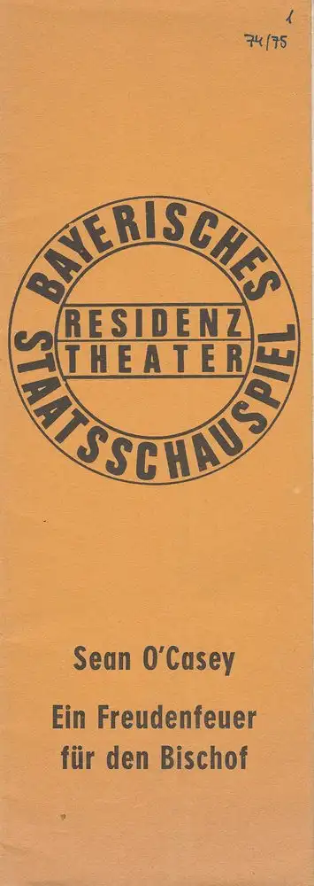 Bayerisches Staatsschauspiel, Residenztheater, Kurt Meisel, Jörg-Dieter Haas, Peter Mertz, Rosmarie Schulz: Programmheft Ein Freudenfeuer für den Bischof. Premiere 15. Oktober 1974 Spielzeit 1974 / 75 Heft 1.