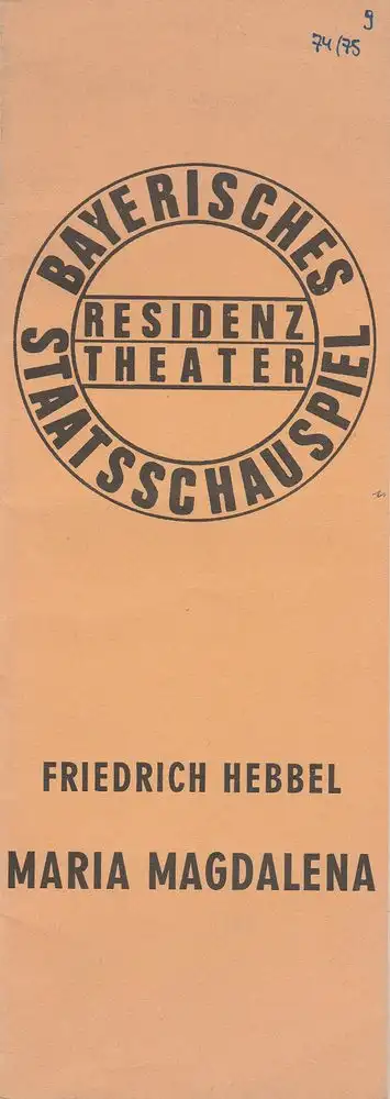 Bayerisches Staatsschauspiel, Residenztheater, Kurt Meisel, Jörg-Dieter Haas, Peter Mertz, Rosmarie Schulz: Programmheft Friedrich Hebbel: MARIA MAGDALENA. Premiere 15. Mai 1975 Spielzeit 1974 / 75 Heft 9.