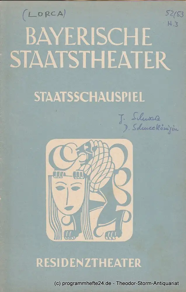 Autoren: Jewgenij Schwarz / Federico Garcia Lorca. Inszenierung: Hermann Wenninger / Erich-Fritz Brücklmeier. Bühnenbild: Kurt Halledder / Ludwig Hornsteiner. Kostüme: Ludwig Hornsteiner / Ludwig Hornsteiner. Mitwirkende: Heini Göbel, Hans Clarin, Angelika Voelkner, Hedwig Wangel, u.a. / Anne Kersten, Alice Verden, Nora Minor, Luise Cleve, u.a - Theaterprogramm, Opernprogramm, Ballettprogramm, Musicalprogramm, Konzertprogramm, Theatermemorabilia, Programmhefte Sammlung, deutsche Theatergeschichte.