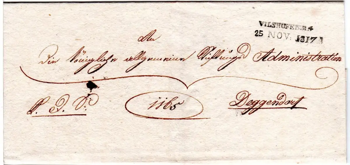 Bayern 1817, L2 Vilshofen R.4. auf Brief n. Deggendorf