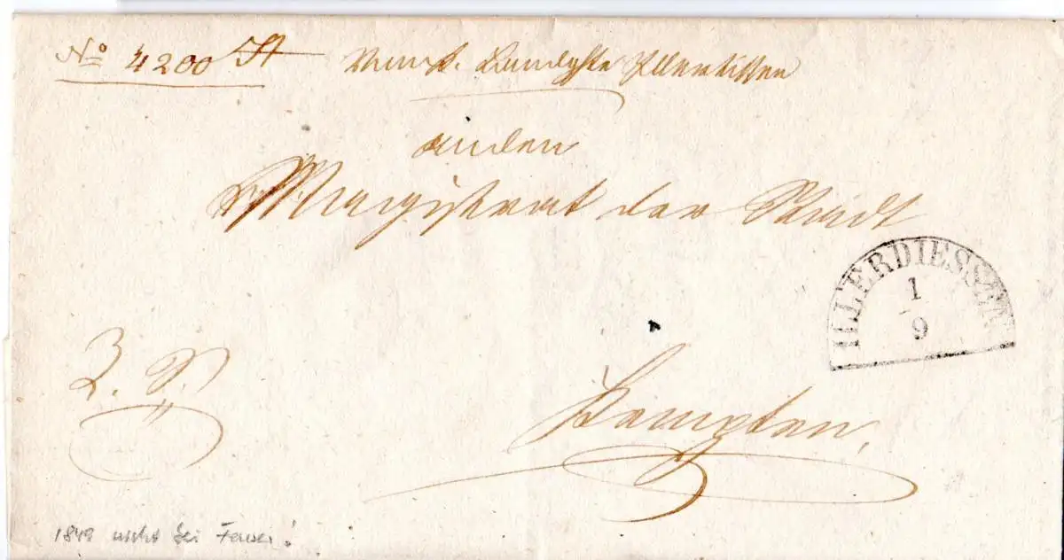 Bayern 1849, HKS ILLERDIESSEN 1/9 auf Brief n. Kempten. Stempel nicht bei Feuser