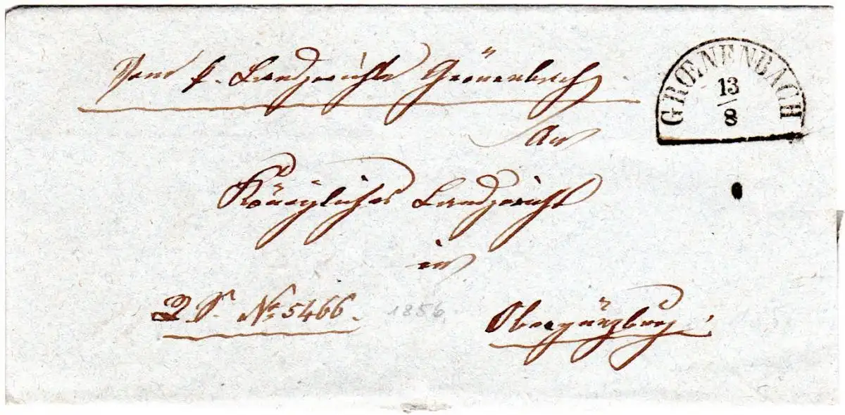 Bayern 1856, HKS GROENENBACH klar auf Brief n. Obergünzburg.