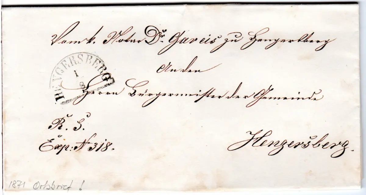 Bayern 1871, HKS Hengersberg auf Orts Brief an den Bürgermeister
