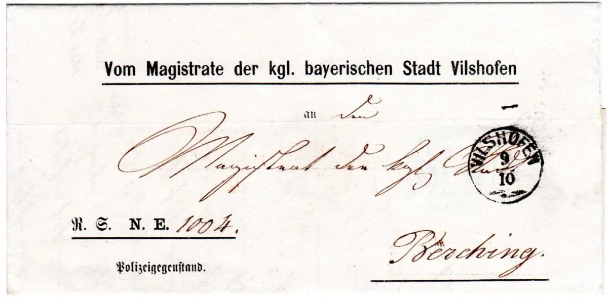 Bayern 1871, Zier-K1 VILSHOFEN klar auf Polizeigegenstand-Brief n. Berching