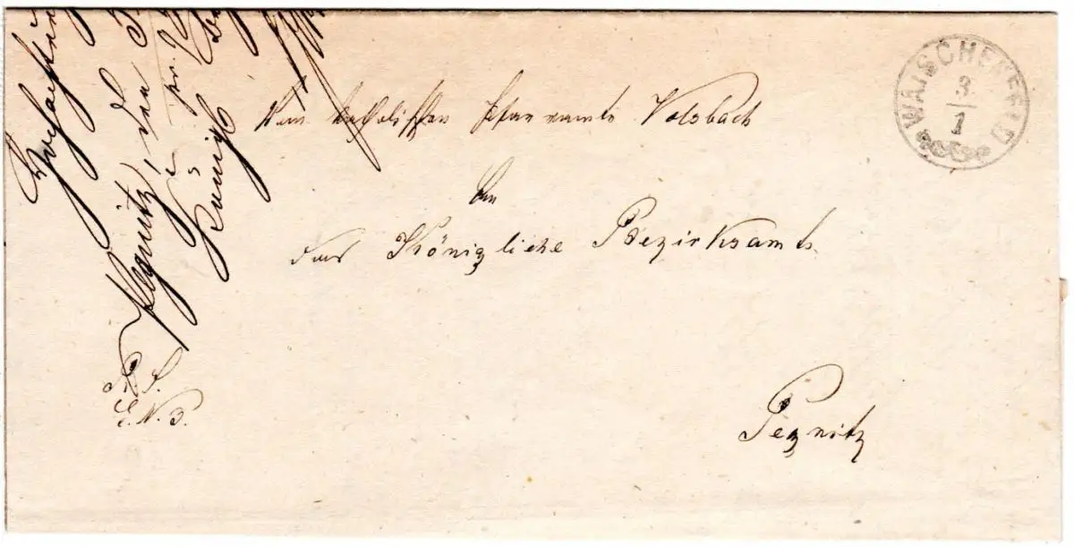 Bayern 1872, K1 Zier Stpl. WAISCHENFELD auf Brief v. Volsbach n. Pegnitz