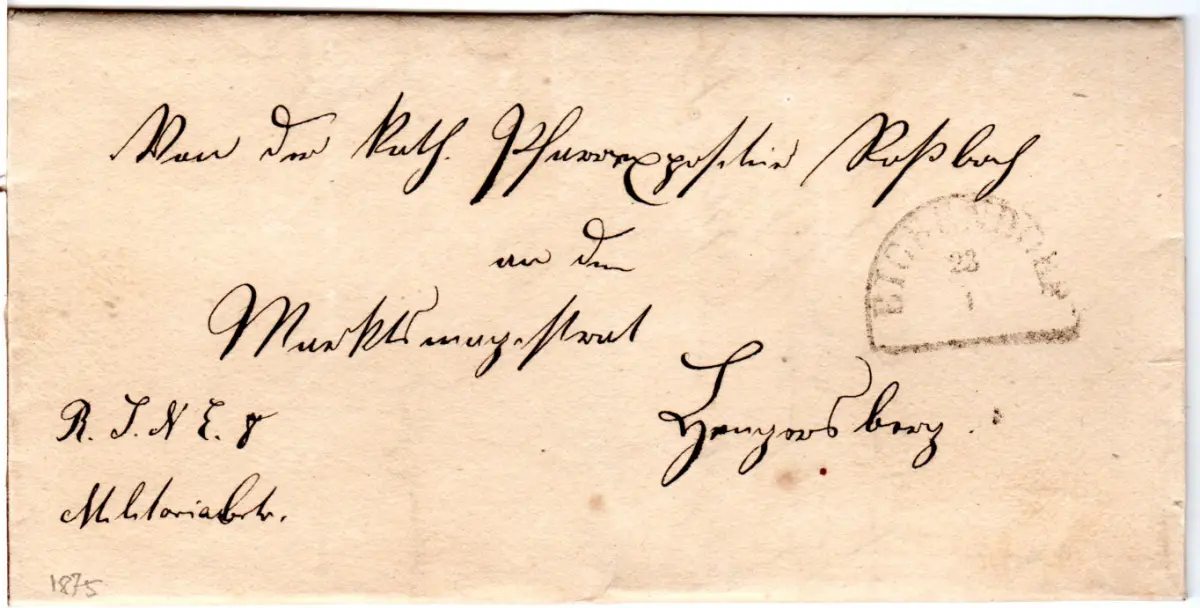 Bayern 1875, HKS Eichendorf auf portofreiem Brief v. Roßbach n. Hengersberg