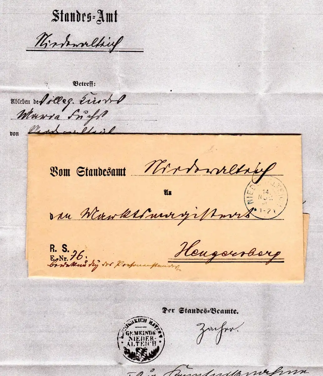 Bayern 1901, K1 Niederalteich auf Amts-Brief v. Taiding n. Hengersberg.