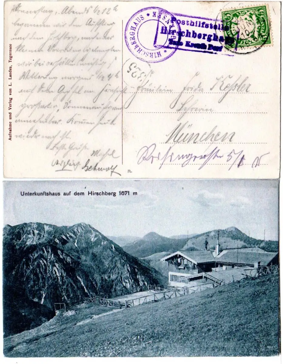 AK Unterkunftshaus auf dem Hirschberg m. blauem Cachet HIRSCHBERGHAUS TEGERNSEE
