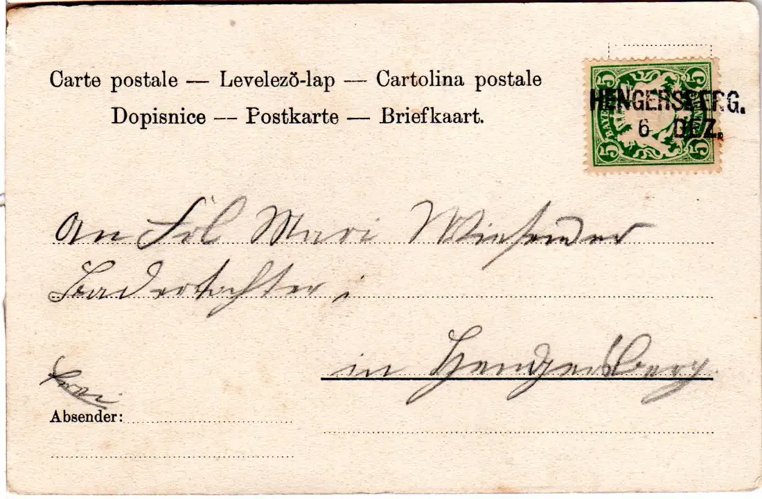 Postkarte "Gruß aus Deggendorf" nach Hengersberg. Hier vermtlich Nachentwertung der Marke mit dem Aushilfsstempel.