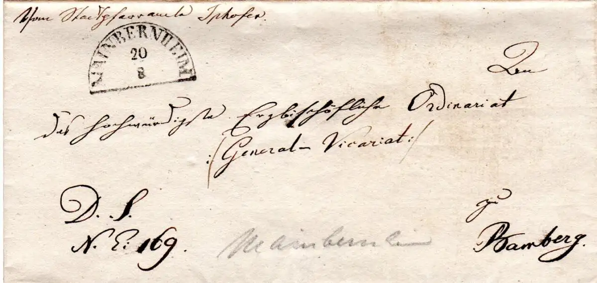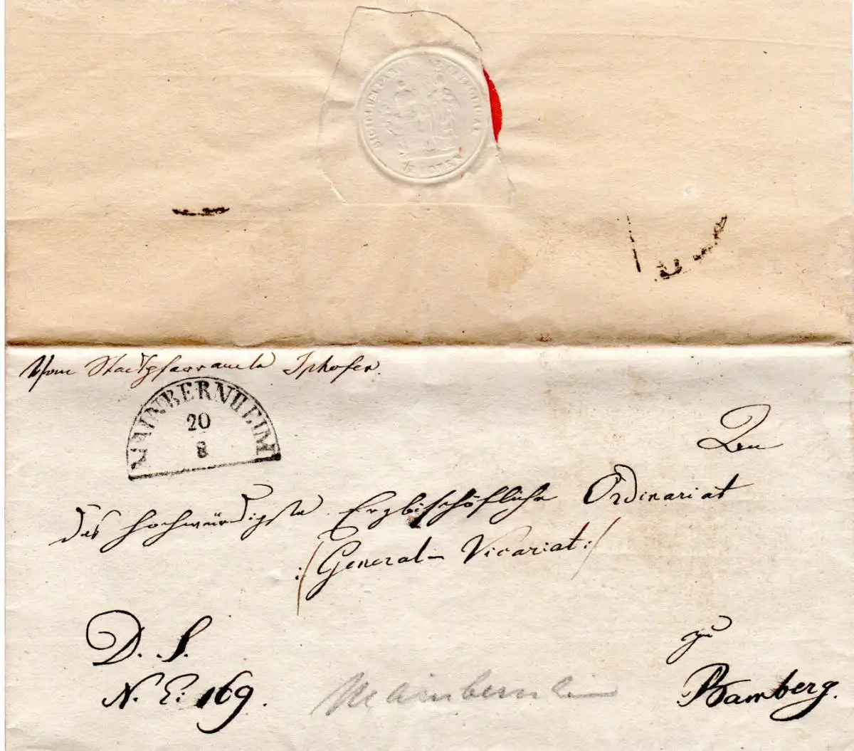 Faltbrief v. Iphofen m. rücks. Prägesiegel Sigillum Par Ordene Catholicae Iphofen u. Ank.Stpl. Bamberg