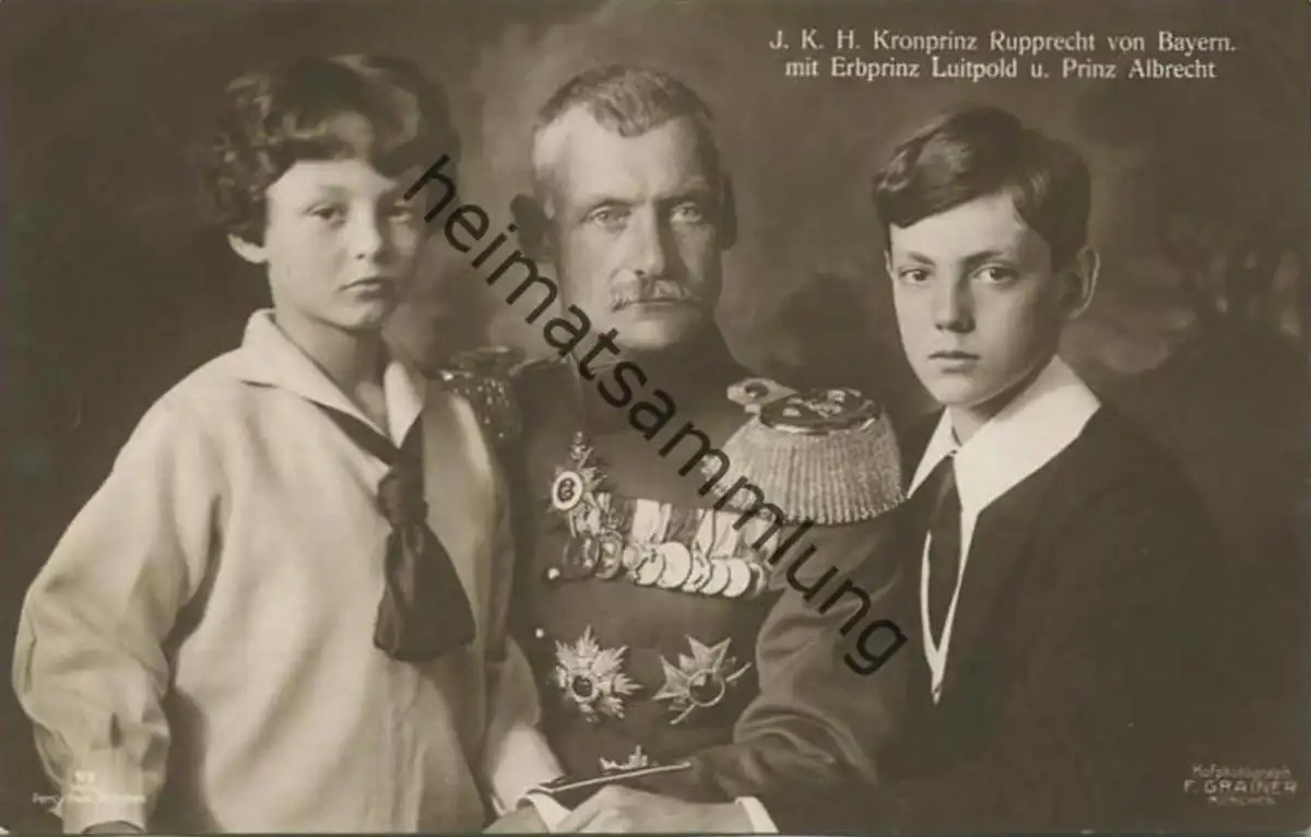 Bayern - Kronprinz Rupprecht von Bayern mit Erbprinz Luitpold und Prinz Albrecht - Phot. F. Grainer München - Verlag Per