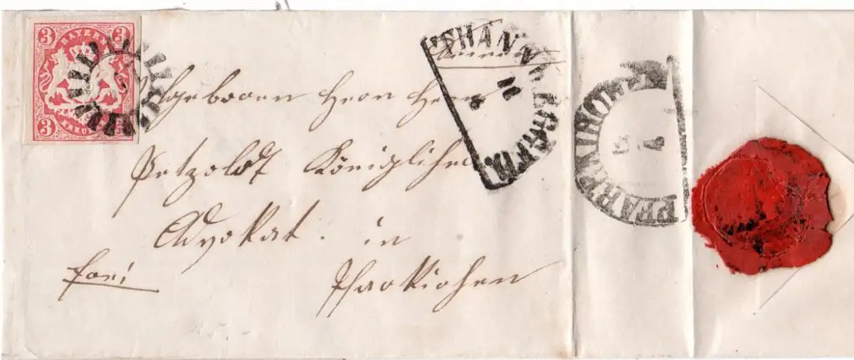 Bayern, MR 517 Thann b. Eggfd. auf kl. Brief m. breitrandiger 3 Kr.
