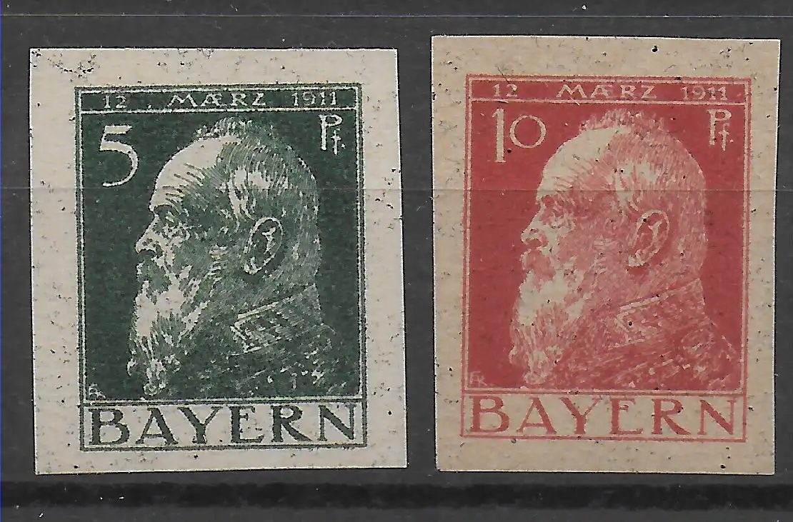 Bayern: MiNr. 77+78 P - Probedrucke ohne Gummi, ohne Wz