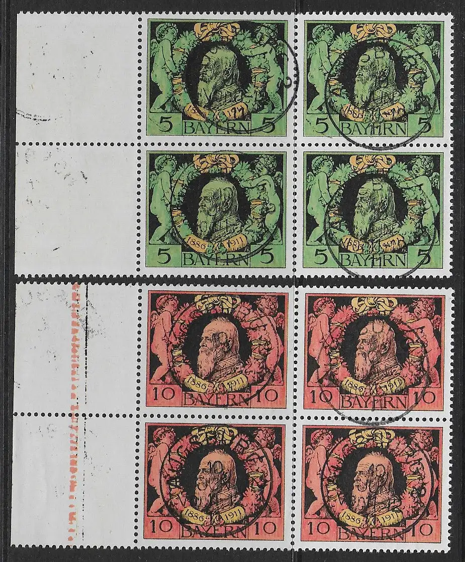 Bayern: MiNr. 92-93A, Viererblock, Rand und Originalgummi, gestempelt