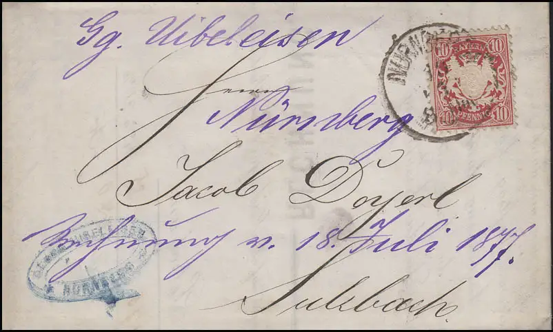 Bayern Rechnung Petroleum 10 Pf. NÜRNBERG 18.7.77 nach SULZBACH/Oberbayern 19.7.