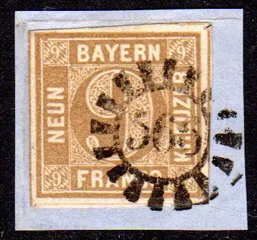 Bayern, breitrandige 9 Kr. braun auf schönem Briefstück m. MR 566 Weiler