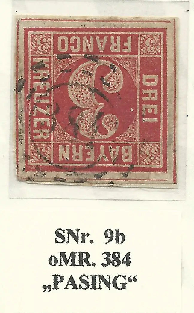 Bayern, oMR 384 PASING auf breitrandiger 3 Kr.