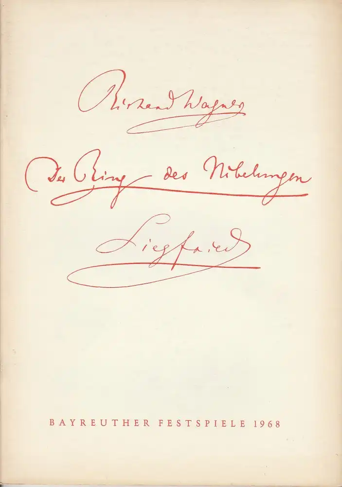 Bayreuther Festspiele, Wolfgang Wagner, Herbert Barth: Programmheft SIEGFRIED Bayreuther Festspiele 1968.