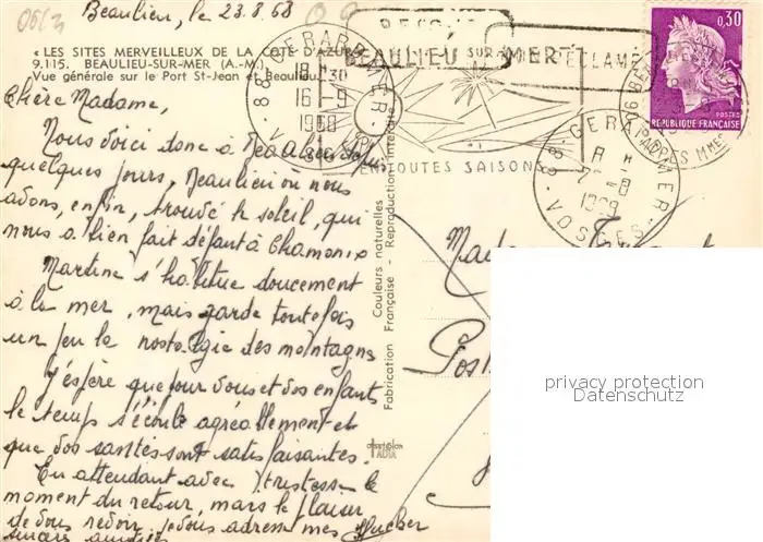 Beaulieu-sur-Mer Fliegeraufnahme Beaulieu-sur-Mer postalisch gelaufen 1968 Erhaltung siehe scans [KathaD81] Kathoren
