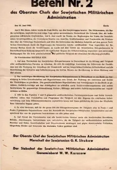 Befehl Nr.2 des Obersten Chefs der Sowjetischen Militärischen Administration Berlin 10. Juni 1945