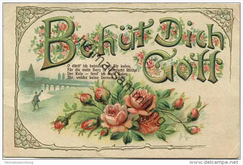 Behüt dich Gott - Prägedruck - Gebrauchsspuren - Ecken teilweise geknickt (E15674) gel. 1907