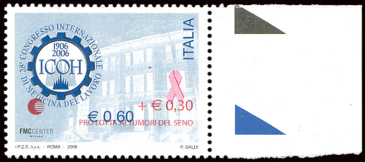 Brustkrebsbekämpfung rote Sorte verschoben Vollgummi - MHN - - Brustkrebsbekämpfung Nr. 2883 sehr gut, b. von f. mit stark nach oben verschobenem Rotdruck - Selten mit so deutlicher Verschiebung Cod. 893/14
