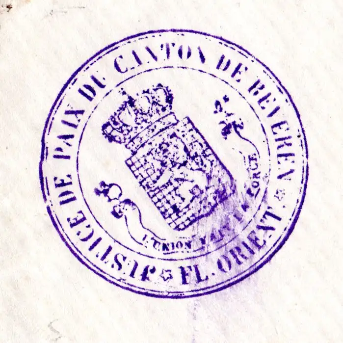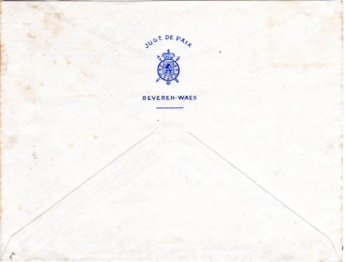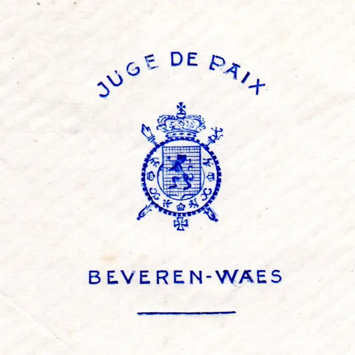 Briefstempel Justice De Paix Du Canton De Beveren Orient m. Wappen klar auf FP-Brief an den Präsident der Civilverwaltung für Ost-Flandern in Gent. Umschlag m. rücks. Vordruck Juge De Paix Beveren-Waes, ebenfalls m. Wappen.